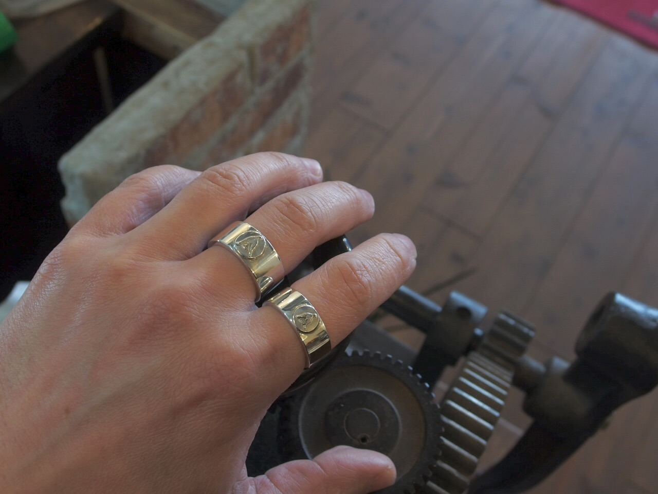 現在、ケイムワンのトレードマークであるサンダーバードマークが付いた平打ちリングは、幅10mmと幅8mmのサイズ展開をしています。(マークの大きさも違います)