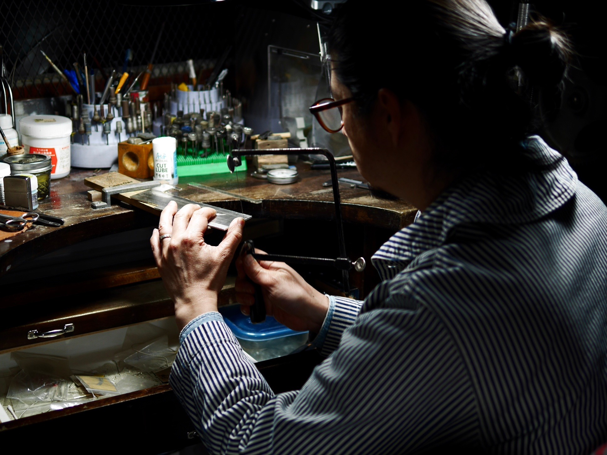 手首サイズに合わせ、直線で15〜16cm前後の長さを糸鋸で地道に切ります。