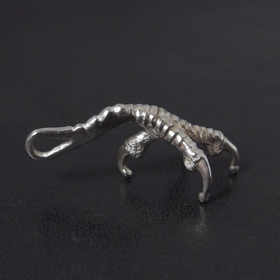 without tax ¥12,000 イーグルの鋭い爪と、力強い脚をイメージしたMサイズのTLONS 右脚です。 爪先は丸めてあるので、安心してお使い頂けます。 バチカン (チェーンの通る) の広さは、CH-03 細角チェーンがちょうど通るくらいです。 サイズ 縦…約 31mm、横…14mm 素材: シルバー950 受注生産のため、完成まで7日〜14日かかります。