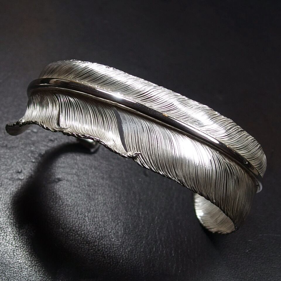 イーグルのフェザーをモチーフにした幅広でワイルドなバングルです。