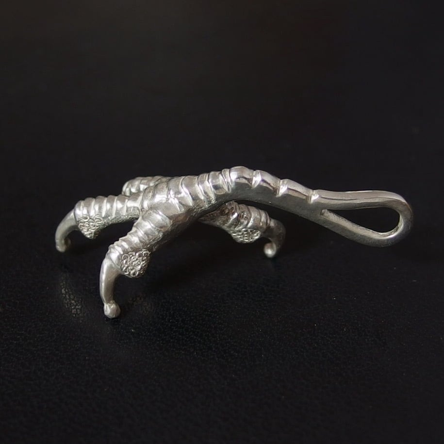 without tax ¥16,000 イーグルの鋭い爪と、力強い脚をイメージしたLサイズのTLONS 左脚です。 爪先は丸めてあるので、安心してお使い頂けます。 バチカン (チェーンの通る) の広さは、CH-02 中角チェーンがちょうど通るくらいです。 サイズ 縦…約 35mm、横…15mm 素材: シルバー950 受注生産のため、完成まで7日〜14日かかります。