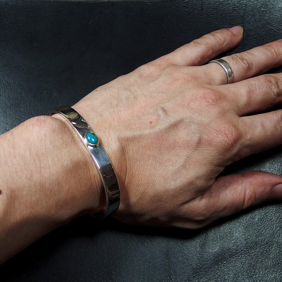 ターコイズを覆輪留めしたシンプルな平打ちバングルです。