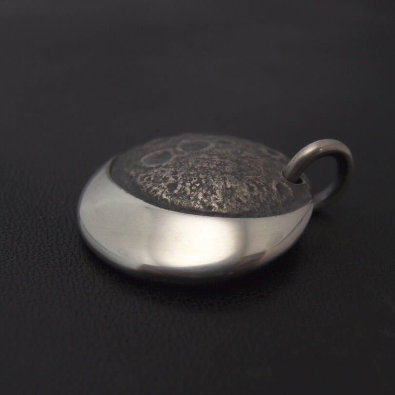 月光部分を鏡面仕上げ、その逆の黒い部分はクレーターを表現しています。