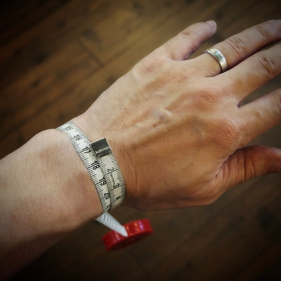 軽く手を開いた状態で画像の位置 (手首の骨の出っ張りと手の甲の間)をメジャーできつくも緩くもない感じで計測したサイズをお知らせください。